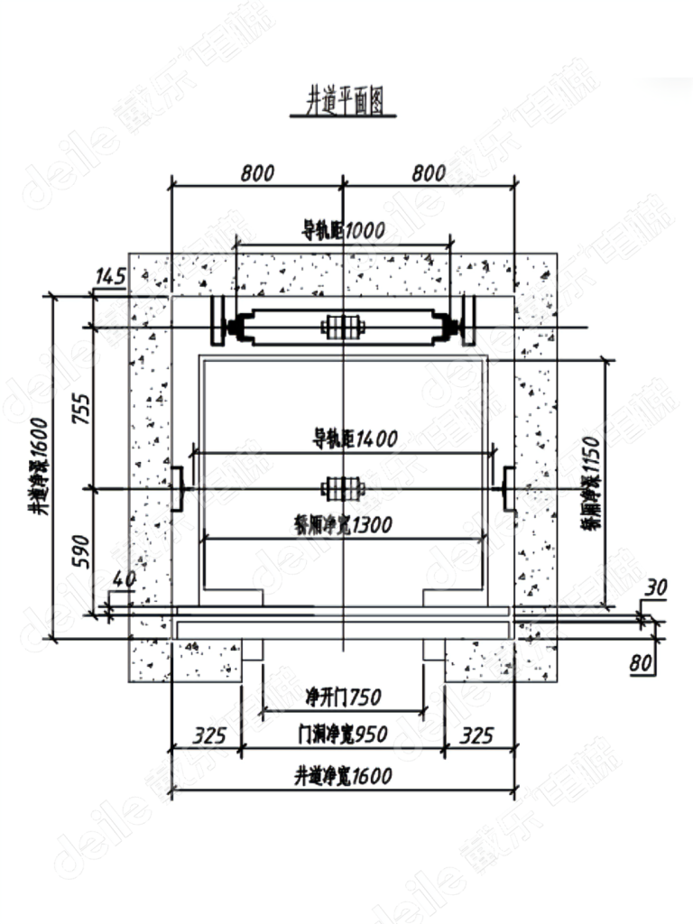 ✅井道内径 :1600 x 1600,对重后置