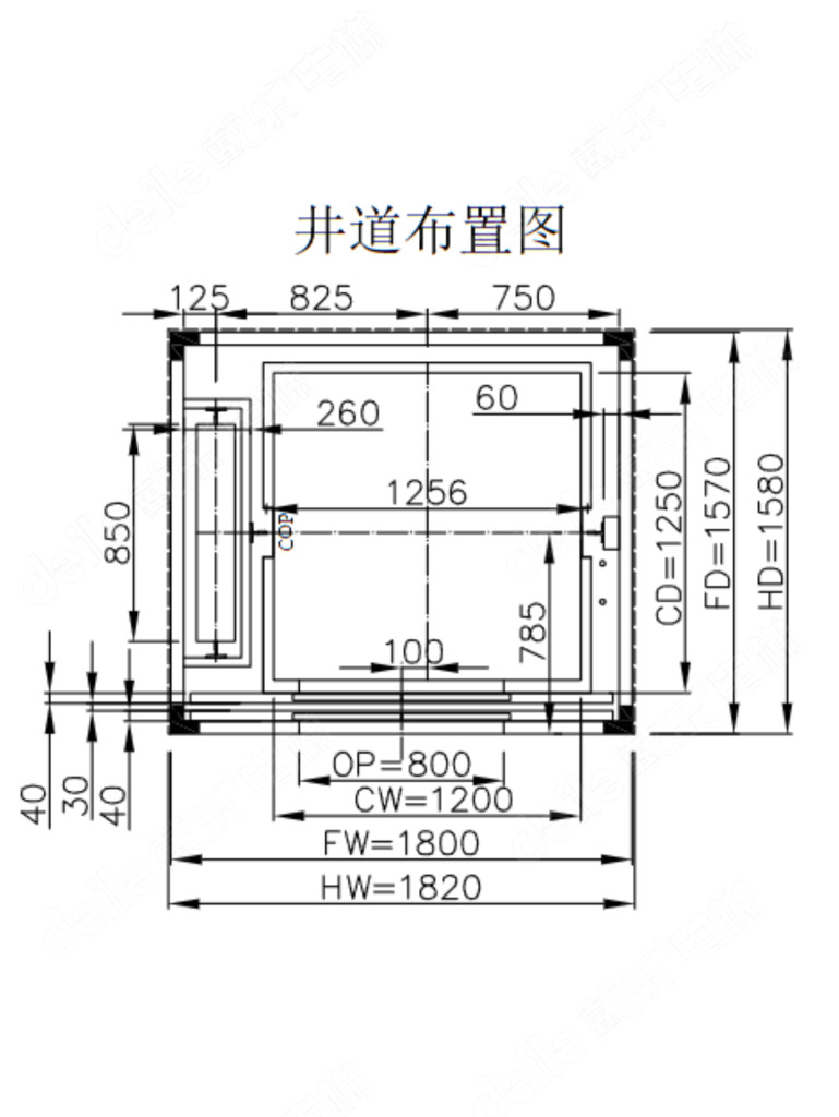 ✅井道尺寸 : 1820 x 1580,对重侧置